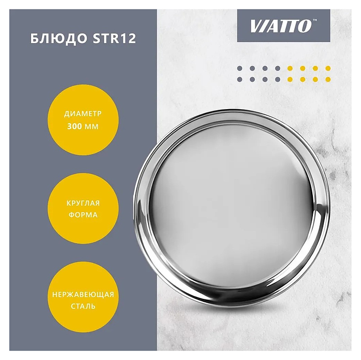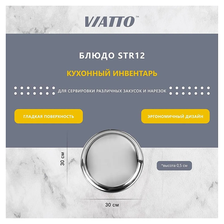 Блюдо VIATTO STR12 используется на предприятиях общественного питания и торговли для сервировки и подачи различных блюд на стол. Изделие имеет круглую форму. Блюдо выполнено из нержавеющей стали, что придает ему высокую прочность и длительный срок службы. Внимание! Информация о товарах, размещенная на сайте, не является публичной офертой, определяемой положениями Части 2 Статьи 437 Гражданского кодекса Российской Федерации. Производители вправе вносить изменения в технические характеристики, внешний вид и комплектацию товаров без предварительного уведомления. Уточняйте характеристики у наших менеджеров перед оформлением заказа. |
