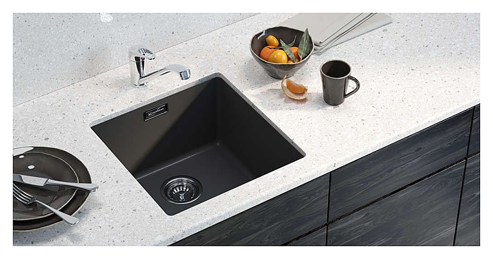 Кухонная мойка Omoikiri Kata 54-U-DC предназначена для установки в частных домах, квартирах, офисах, отелях, гостиницах и на различных предприятиях для мытья столовых принадлежностей, посуды, приборов, инвентаря и продуктов питания. Изделие выполнено из искусственного гранита ARTGRANIT®, который является сочетанием твердых частиц кварца и гранита, а также прочного связующего полимера. Покрытие имеет гладкую поверхность и очень плотную структуру, не позволяющую каплям жидкости и грязи проникать глубоко внутрь мойки, отталкивая частицы воды. В комплект поставки входят сифон, донный клапан и крепления. Особенности: