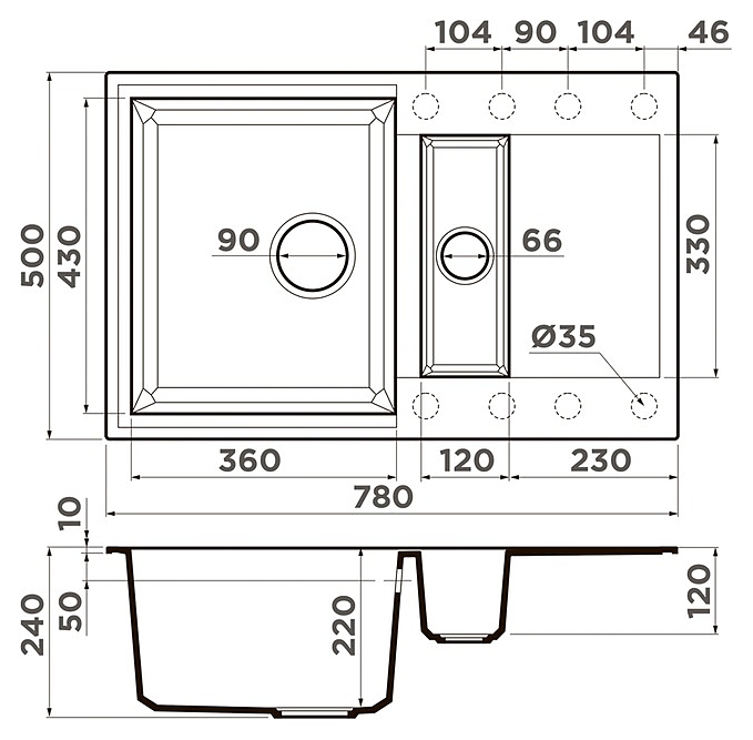 Кухонная мойка Omoikiri Sakaime 78-2-BE предназначена для установки в частных домах, квартирах, офисах, отелях, гостиницах и на различных предприятиях для мытья столовых принадлежностей, посуды, приборов, инвентаря и продуктов питания. Изделие выполнено из искусственного гранита TETOGRANIT®, который является сочетанием натурального гранита и акриловой смолы, благодаря чему мойка выдерживает высокие температуры и удары. Покрытие TETORON® обладает повышенной устойчивостью к появлению бактерий и грибка, а также надежно защищает от воздействия агрессивных внешних факторов. В комплект поставки входят сифон, донный клапан, слив, перелив и крепления. Особенности: