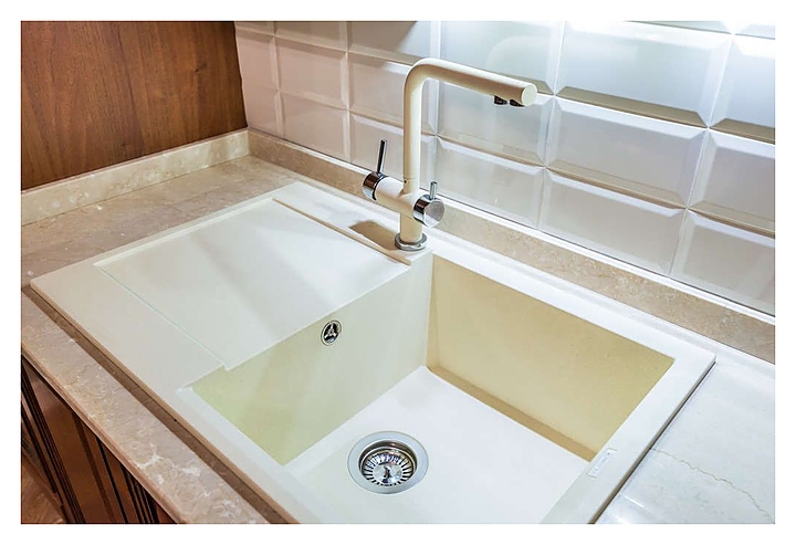 Кухонная мойка Omoikiri Sakaime 78-WH предназначена для установки в частных домах, квартирах, офисах, отелях, гостиницах и на различных предприятиях для мытья столовых принадлежностей, посуды, приборов, инвентаря и продуктов питания. Изделие выполнено из искусственного гранита TETOGRANIT®, который является сочетанием натурального гранита и акриловой смолы, благодаря чему мойка выдерживает высокие температуры и удары. Покрытие TETORON® обладает повышенной устойчивостью к появлению бактерий и грибка, а также надежно защищает от воздействия агрессивных внешних факторов. В комплект поставки входят сифон, донный клапан, слив, перелив и крепления. Особенности: