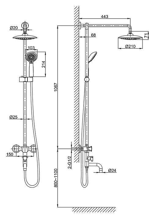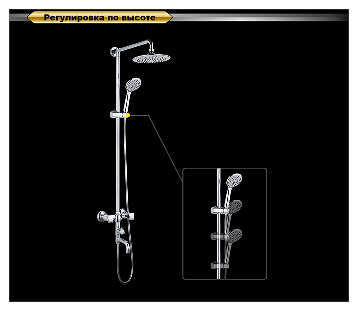 Душевая система D&K Hessen Grimm DA1384701E09 предназначена для использования в ванных помещениях для подачи горячей и холодной воды. Модель оснащена поворотным изливом для наполнения ванны, душевым гарнитуром, включающим в себя тропический верхний душ, регулируемую по высоте душевую штангу, ручную лейку с душевым шлангом с защитой от перекручивая и держатель для ручной лейки. Изделие выполнено из высококачественной латуни, отличающейся прочностью, долговечностью и устойчивостью к перепадам температур. Комплектация:
