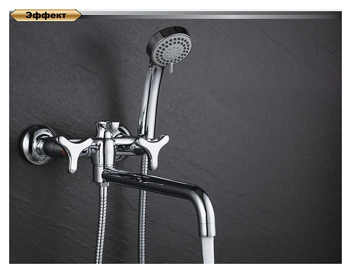 Смеситель D&K Hessen Goethe DA1383341 предназначен для использования в ванных комнатах для подачи горячей и холодной воды. Модель оснащена длинным поворотным изливом, трехрежимной ручной лейкой и душевым шлангом, керамической кран-буксой для бесшумного смешивания холодной и горячей воды, а также аэратором для создания мягкой ровной струи без разбрызгивания. Изделие выполнено из высококачественной латуни, отличающейся прочностью, долговечностью и устойчивостью к перепадам температур. В комплект поставки входят cмеситель, эксцентрики, декоративная шайба (отражатель), шланг душевой, лейка душевая и держатель душевой лейки. Особенности: