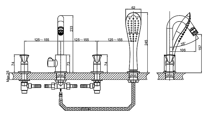 Смеситель встраиваемый на борт ванны D&K Hessen Grimm DA1384901 на 4 отверстия, хром