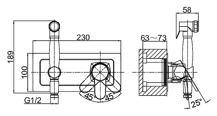 Смеситель встраиваемый для биде с гигиеническим душем D&K Rhein Marx DA1394501 хром