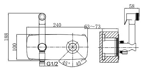 Смеситель встраиваемый для биде с гигиеническим душем D&K Bayern Alfeld DA1484501 хром