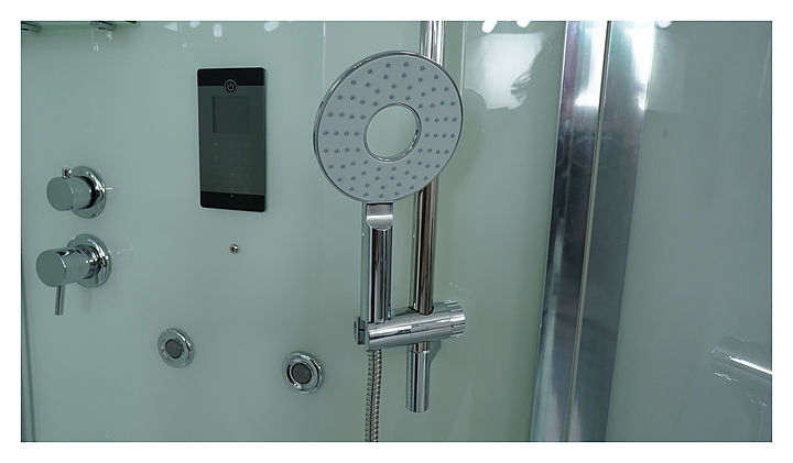 Душевая кабина TIMO Puro H-510 R предназначена для использования в ванных комнатах. Модель оснащена ручной лейкой, точечным гиромассажем, трёхрежимным смесителем, сифоном с гидрозатвором, хамамом, подсветкой, радио, озонированием, аромотерапией, хромотерапией и сигналом SOS. Наличие полки обеспечивает максимальный комфорт при приеме душа, размещая на ней необходимые мыльные принадлежности. Раздвижная конструкция позволяет экономить пространство и оптимальна для небольших помещений. Изделие выполнено из акрила, устойчивого к механическим повреждениям, обладающего небольшим весом и повышенной шумоизоляцией, профиль - из алюминия, ручки - из нержавеющей стали. Особенности: