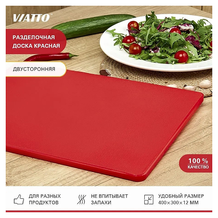 Разделочная доска VIATTO SZ4030 используется на предприятиях общественного питания и торговли, а также в частных домах и квартирах для разделки и нарезки пищевых продуктов. Изделие выполнено из полипропилена.