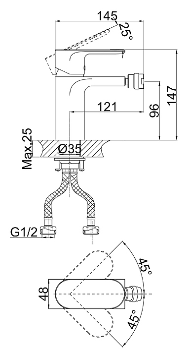 Смеситель для биде D&K Bayern Purer DA1252201 предназначен для использования в ванных и туалетных комнатах для подачи горячей и холодной воды. Модель оснащена изливом, керамическим картриджем, обеспечивающим плавный ход рычага смесителя, контроль и точность при выборе напора и температуры воды, а также аэратором для создания мягкой ровной струи без разбрызгивания. Изделие выполнено из высококачественной латуни, отличающейся прочностью, долговечностью и устойчивостью к перепадам температур. В комплект поставки входят cмеситель, гибкая подводка и крепежная гайка. Особенности: