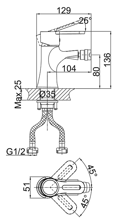 Смеситель для биде D&K Rhein Paulinus DA1352201 предназначен для использования в ванных и туалетных комнатах для подачи горячей и холодной воды. Модель оснащена изливом, керамическим картриджем, обеспечивающим плавный ход рычага смесителя, контроль и точность при выборе напора и температуры воды, а также аэратором для создания мягкой ровной струи без разбрызгивания. Изделие выполнено из высококачественной латуни, отличающейся прочностью, долговечностью и устойчивостью к перепадам температур. В комплект поставки входят cмеситель, гибкая подводка и крепежная гайка. Особенности: