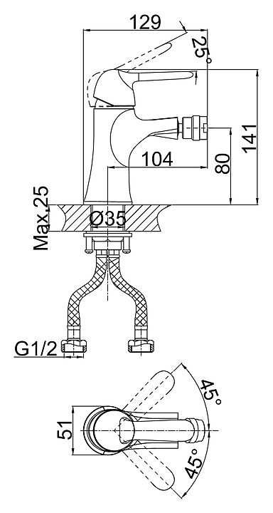 Смеситель для биде D&K Rhein Ambrosius DA1342201 хром