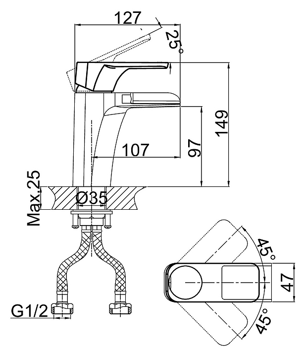 Смеситель для раковины D&K Berlin Technische DA1432815 предназначен для использования в ванных и туалетных комнатах для подачи горячей и холодной воды. Модель оснащена изливом, керамическим картриджем, обеспечивающим плавный ход рычага смесителя, контроль и точность при выборе напора и температуры воды, а также аэратором для создания мягкой ровной струи без разбрызгивания. Изделие выполнено из высококачественной латуни, отличающейся прочностью, долговечностью и устойчивостью к перепадам температур. В комплект поставки входят cмеситель, гибкая подводка и крепежная гайка. Особенности: