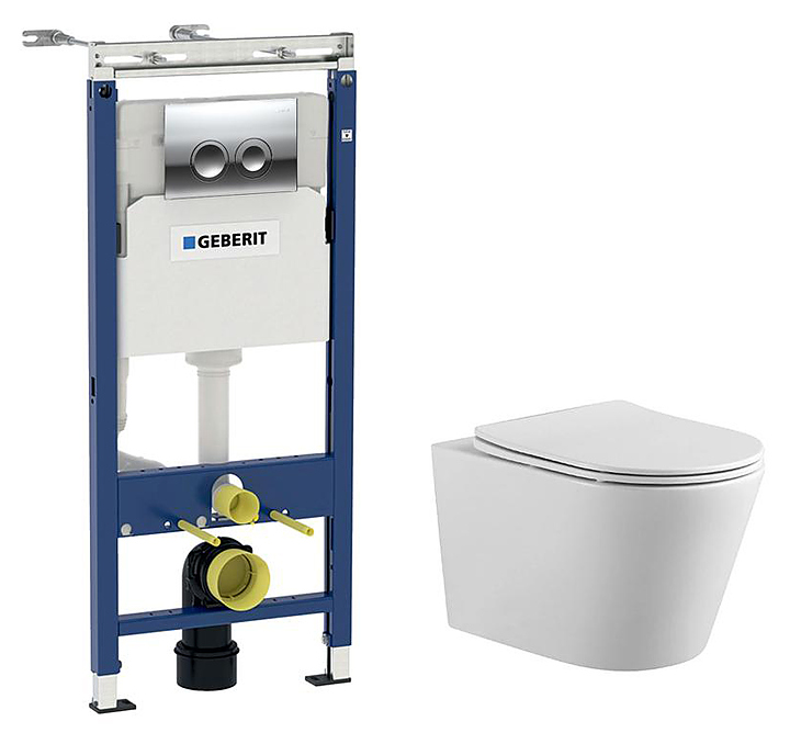 В комплект поставки входят унитаз AQ1905-00 с сиденьем с крышкой, инсталляция Geberit Delta 458.123.21.1 с клавишей Delta 21 цвет хром и крепежом. Особенности: