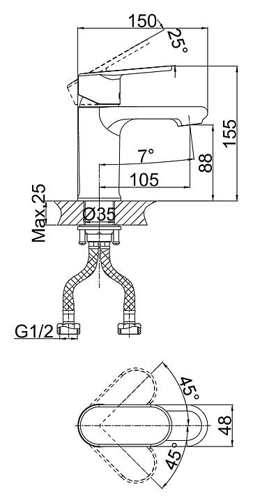 Смеситель для раковины D&K Rhein Speyer DA1312101 предназначен для использования в ванных и туалетных комнатах для подачи горячей и холодной воды. Модель оснащена низким фиксированным изливом, керамическим картриджем, обеспечивающим плавный ход рычага смесителя, контроль и точность при выборе напора и температуры воды, а также аэратором для создания мягкой ровной струи без разбрызгивания. Изделие выполнено из высококачественной латуни, отличающейся прочностью, долговечностью и устойчивостью к перепадам температур. В комплект поставки входят cмеситель, гибкая подводка и крепежная гайка. Особенности: