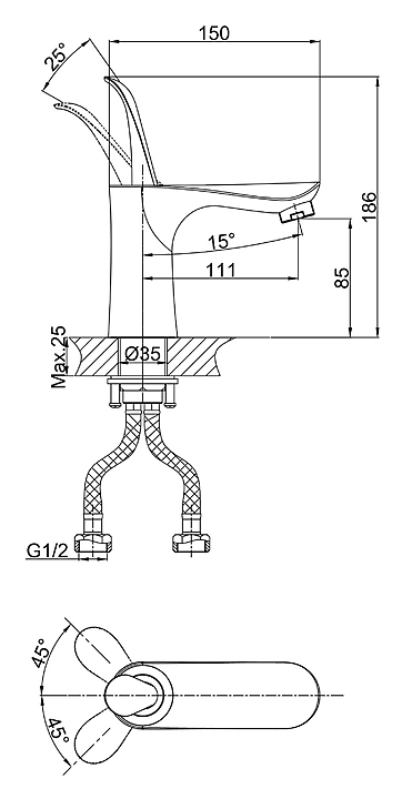 Смеситель для раковины D&K Venice Baciano DA1032141 предназначен для использования в ванных и туалетных комнатах для подачи горячей и холодной воды. Модель оснащена коротким низким изливом, керамическим картриджем, обеспечивающим плавный ход рычага смесителя, контроль и точность при выборе напора и температуры воды, а также аэратором для создания мягкой ровной струи без разбрызгивания. Изделие выполнено из высококачественной латуни, отличающейся прочностью, долговечностью и устойчивостью к перепадам температур. В комплект поставки входят cмеситель, гибкая подводка и крепежная гайка. Особенности: