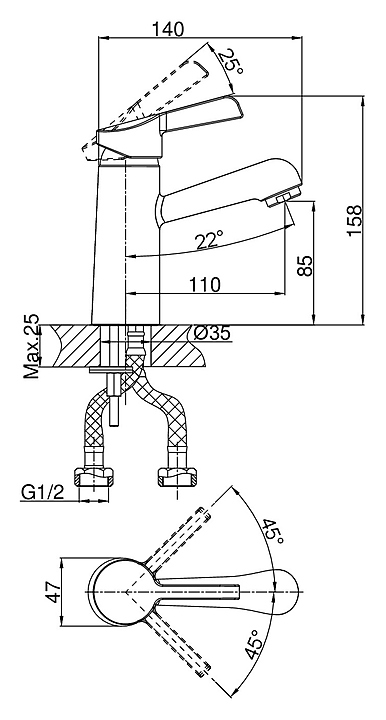Смеситель для раковины D&K Rhein Schiller DA1462101 предназначен для использования в ванных и туалетных комнатах для подачи горячей и холодной воды. Модель оснащена низким фиксированным изливом, керамическим картриджем, обеспечивающим плавный ход рычага смесителя, контроль и точность при выборе напора и температуры воды, а также аэратором для создания мягкой ровной струи без разбрызгивания. Изделие выполнено из высококачественной латуни, отличающейся прочностью, долговечностью и устойчивостью к перепадам температур. В комплект поставки входят cмеситель, гибкая подводка и крепежная гайка. Особенности: