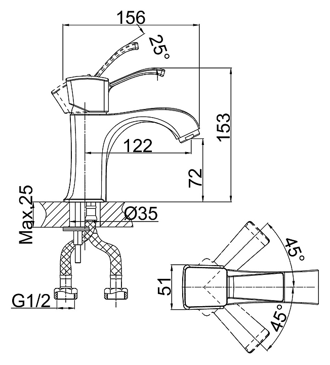 Смеситель для раковины D&K Rhein Bach DA1472101 предназначен для использования в ванных и туалетных комнатах для подачи горячей и холодной воды. Модель оснащена низким фиксированным изливом, керамическим картриджем, обеспечивающим плавный ход рычага смесителя, контроль и точность при выборе напора и температуры воды, а также аэратором для создания мягкой ровной струи без разбрызгивания. Изделие выполнено из высококачественной латуни, отличающейся прочностью, долговечностью и устойчивостью к перепадам температур. В комплект поставки входят cмеситель, гибкая подводка и крепежная гайка. Особенности: