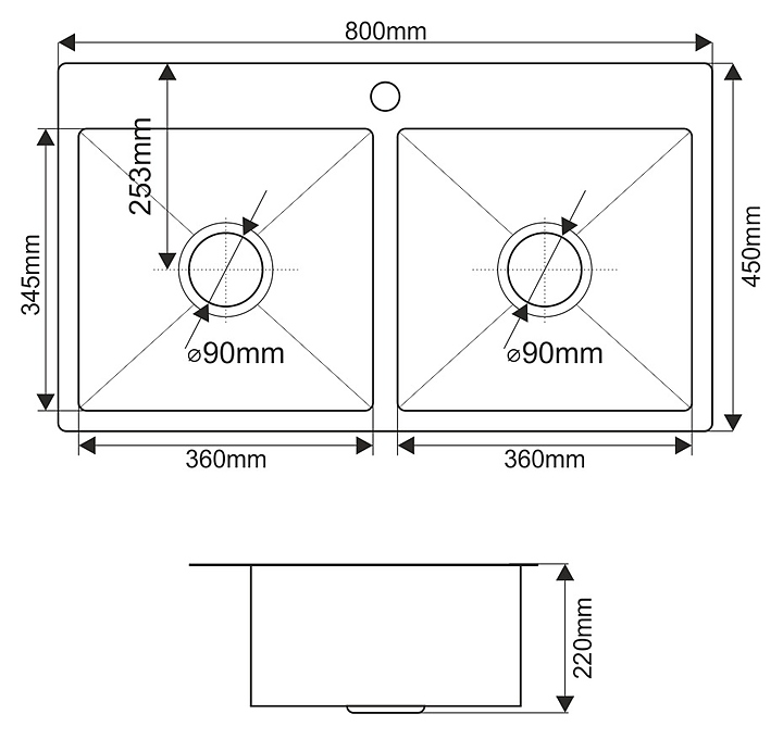 Кухонная мойка двойная MELANA HS8045 ProfLine 3,0/220 сатин