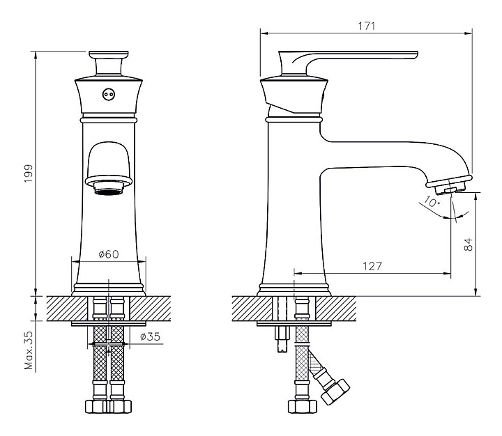 Cмеситель для раковины RUSH Flores FL0835-11 предназначен для подачи горячей и холодной воды в ванных помещениях. Однорычажный тип управления позволяет быстро и плавно регулировать подачу воды одной рукой. Модель оснащена керамическим картриджем, обеспечивающим плавный ход рычага смесителя, контроль и точность при выборе напора и температуры воды. Аэратор экономит расход воды, уменьшает шум и снижает количество брызг. Изделие выполнено из латуни, отличающейся прочностью, долговечностью и устойчивостью к перепадам температур, аэратор - из пластика с нержавеющим корпусом, ручка - из металла. В комплект поставки входят аэратор, фум-лента, универсальная присоединительная группа и 2 подводки с латунными гайками. Дополнительные характеристики:
