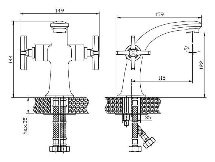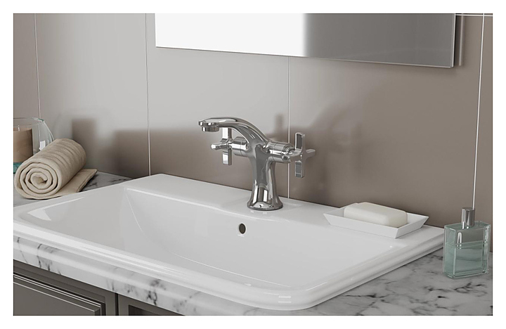 Cмеситель для раковины RUSH Melville MV1135-11 предназначен для подачи горячей и холодной воды в ванных помещениях. Модель оснащена керамической кран-буксой и аэратором, который экономит расход воды, уменьшает шум и снижает количество брызг. Изделие выполнено из латуни, отличающейся прочностью, долговечностью и устойчивостью к перепадам температур, аэратор - из пластика с нержавеющим корпусом, рычаг - из металла. В комплект поставки входят аэратор, фум-лента, присоединительная группа и 2 подводки с латунными гайками. Дополнительные характеристики: