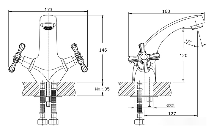 Cмеситель для раковины RUSH Bianki BI7650-11 предназначен для подачи горячей и холодной воды в ванных помещениях. Модель оснащена керамической кран-буксой и аэратором, который экономит расход воды, уменьшает шум и снижает количество брызг. Изделие выполнено из латуни, отличающейся прочностью, долговечностью и устойчивостью к перепадам температур, аэратор - из пластика с нержавеющим корпусом, ручка - из металла. В комплект поставки входят аэратор, фум-лента, универсальная присоединительная группа и 2 подводки с латунными гайками. Дополнительные характеристики: