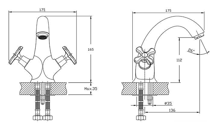 Cмеситель для раковины RUSH Sakhalin SA5350-11 предназначен для подачи горячей и холодной воды в ванных помещениях. Модель оснащена керамической кран-буксой и аэратором, который экономит расход воды, уменьшает шум и снижает количество брызг. Изделие выполнено из латуни, отличающейся прочностью, долговечностью и устойчивостью к перепадам температур, аэратор - из пластика с нержавеющим корпусом. В комплект поставки входят аэратор, фум-лента, присоединительная группа и 2 подводки с латунными гайками. Дополнительные характеристики: