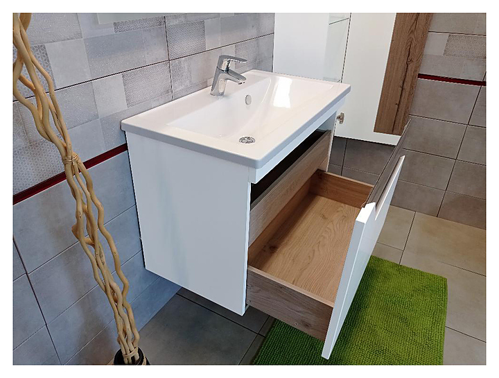Тумба под раковину БРИКЛАЕР Брайтон 70 см, подвесная, белый матовый, дуб Кера