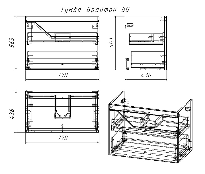 Тумба БРИКЛАЕР Брайтон 80 выполнена в современном стиле. Благодаря подвесной конструкции изделие не занимает много места, позволяет экономить пространство и облегчает уборку. Модель оснащена 2 выдвижными ящиками с нажимным механизмом открывания. Корпус выполнен из МДФ в краске. Может использоваться в комплекте с раковиной Комо 80. Особенности: