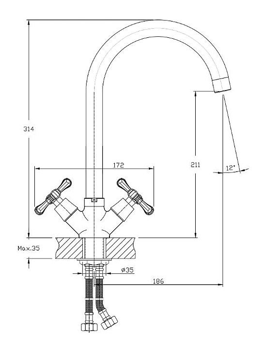 Смеситель для раковины RUSH Bianki BI7650-24 предназначен для подачи горячей и холодной воды в кухонных помещениях. Модель оснащена керамической кран-буксой, обеспечивающей плавный ход вентилей и бесшумное смешивание воды. Аэратор экономит расход воды, уменьшает шум и снижает количество брызг. Изделие выполнено из латуни, отличающейся прочностью, долговечностью и устойчивостью к перепадам температур, аэратор - из пластика с нержавеющим корпусом. В комплект поставки входят аэратор, фум-лента, присоединительная группа и подводка. Дополнительные характеристики: