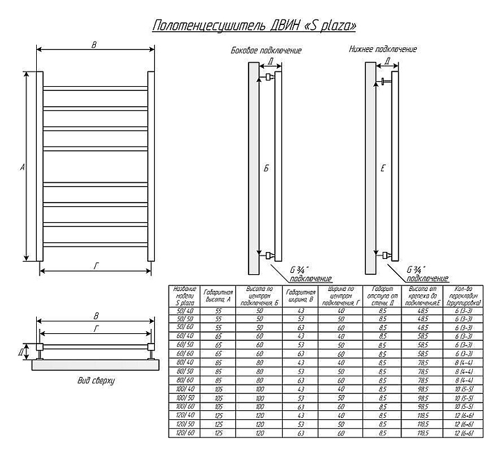 Полотенцесушитель водяной Двин 4656759174460 S Plaza 60/50 К3, полированный