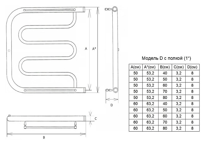 Полотенцесушитель водяной Двин 4627086011766 D 50/60 1"-1/2" К0 с полкой, полированный
