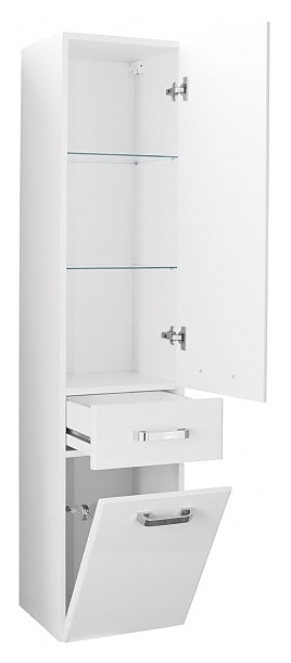 Шкаф-пенал подвесной Mixline Стив-34 34х152 см с бельевой корзиной, белый