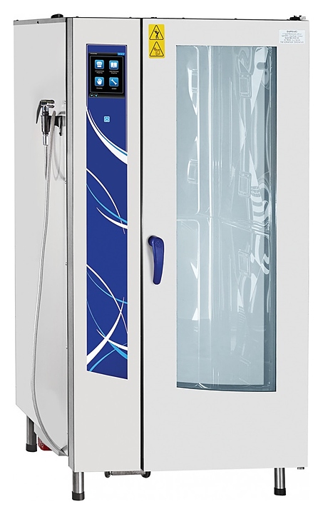 Пароконвектомат Abat ПКА 20-1/1ПП2 предназначен для приготовления широкого спектра блюд, выпечки хлебобулочных и кондитерских изделий в гостиничном и ресторанном бизнесе, на предприятиях пищевой промышленности, общественного питания и торговли. Модель оснащена 8 воздушными трубчатыми электронагревателями (ТЭНами),парогенератором с 8 водяными ТЭНами, 2 вентиляторами, выпускным отверстием с заслонкой, дверью с поворотной рукояткой и смотровым окном, а также сенсорной панелью управления с жидкокристаллическим дисплеем. Корпус выполнен из стали с антикоррозийным покрытием белого цвета с декоративной вертикальной вставкой на фронтальной панели, внутренняя облицовка камеры – из высококачественной нержавеющей стали.