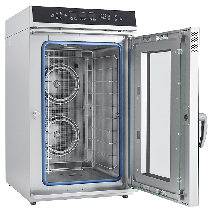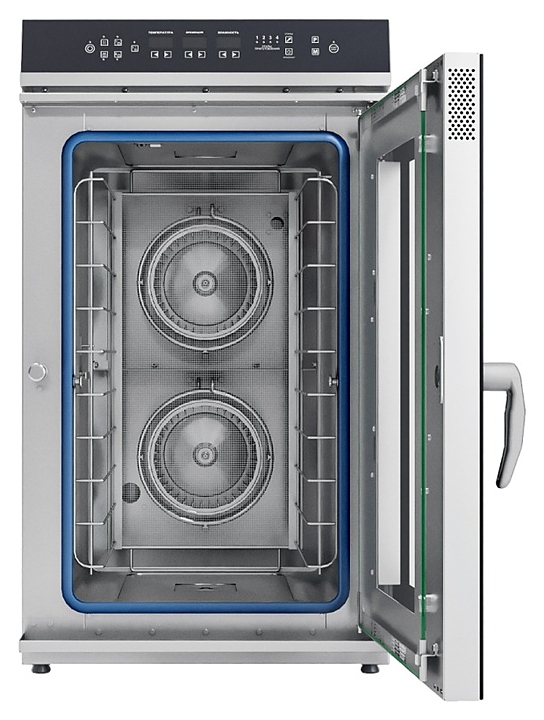 Пароконвектомат Abat ПКА 10-2/3П-01 предназначен для приготовления широкого спектра блюд, выпечки хлебобулочных и кондитерских изделий в гостиничном и ресторанном бизнесе, на предприятиях пищевой промышленности, общественного питания и торговли. Модель оснащена 2 воздушными трубчатыми электронагревателями (ТЭНами), парогенератором с 3 водяными ТЭНами, 2 вентиляторами в задней стенке, дверью с поворотной рукояткой и смотровым окном, а также панелью управления с мембранной клавиатурой, светодиодными лампами индикации и цифровыми дисплеями. Внутренняя облицовка камеры, лопасти вентиляторов и направляющие для противней выполнены из высококачественной нержавеющей стали, дверь и верхняя фронтальная панель в исполнении черного цвета. Гастроемкости не входят в комплект поставки и приобретаются отдельно. Рекомендуется дополнительно приобрести водоумягчитель и фильтр-систему для очистки и смягчения воды. Подробнее о необходимости водоподготовки читайте здесь. Особенности: