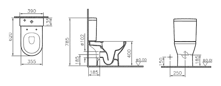 Унитаз напольный с бачком Vitra Integra Round 9833B003-7206 Open-Back
