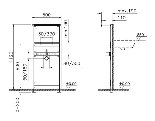 Инсталляция Vitra Frame 780-2800 предназначена для установки с любыми подвесными раковинами. Модель представляет собой самонесущую раму с регулируемыми по высоте ножками. Инсталляция подходит для установки за гипсокартонной перегородкой и перед капитальной стеной. Модель выполнена из стали, оцинкована снаружи и внутри, а также покрыта краской методом порошкового напыления, что полностью исключает коррозию и гниение. В комплект поставки входят крепления раковины к раме и крепления рамы к стене и полу. Дополнительные характеристики: