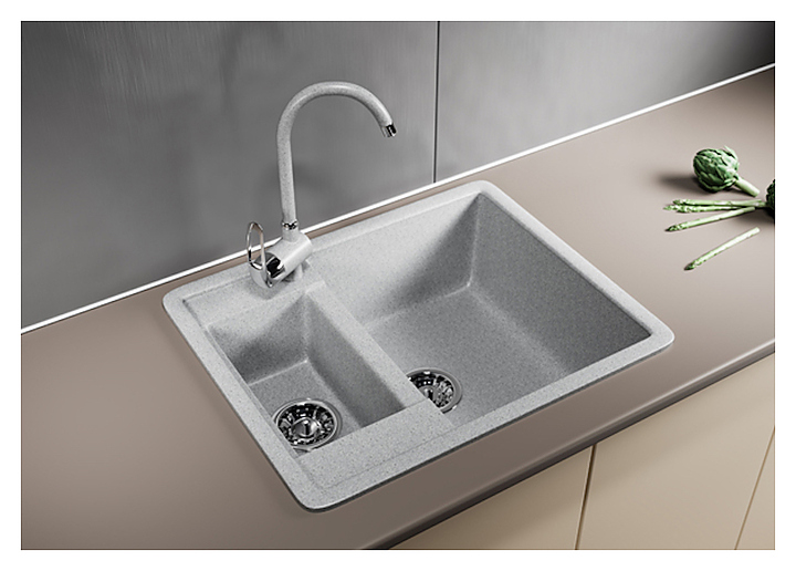 Мойка кухонная Mixline ML-GM21 (310) 48,5х60 см с 2 чашами, серая