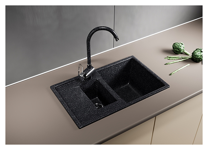 Мойка кухонная Mixline ML-GM22 (308) 49,5х77 см с 2 чашами, черная