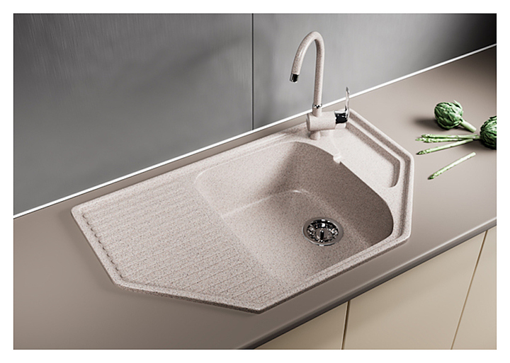 Мойка кухонная Mixline ML-GM24 (302) 48,5х78 см угловая с крылом, песочная