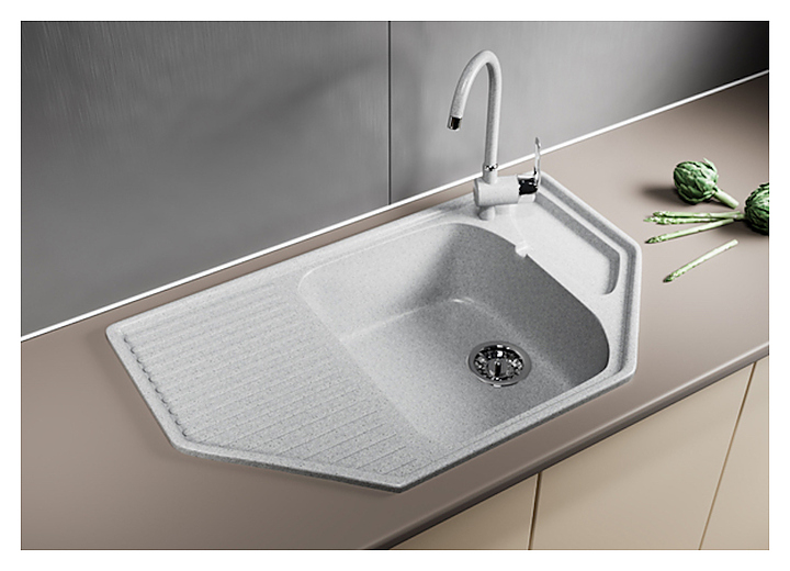 Мойка кухонная Mixline ML-GM24 (310) 48,5х78 см угловая с крылом, серая