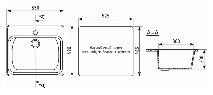 Мойка кухонная Mixline ML-GM15 (308) 49х55 см черная