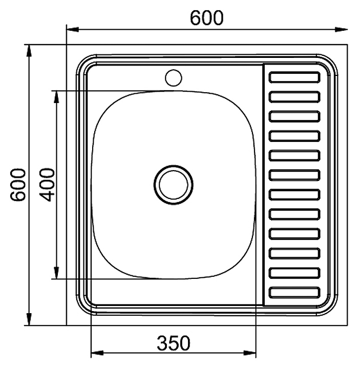 Мойка кухонная Mixline ML 60х60 см слив 40 мм, толщина стали 4 мм, левая