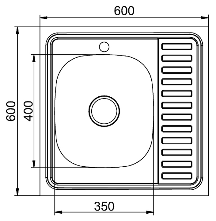 Мойка кухонная Mixline ML 60х60 см слив 90 мм, толщина стали 8 мм, с сифоном, левая