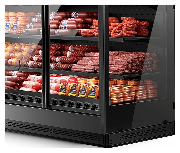 Угловая холодильная горка Dazzl Vega DG 090 H210 М предназначена для эффектной демонстрации и кратковременного предпродажного хранения предварительно охлажденной мясной продукции на предприятиях общественного питания и торговли. Модель оснащена подставкой с воздухопроводящими решетками, распашными дверьми и 5 навесными экспозиционными полками с наклонными профилями ценникодержателей. Двери с прозрачными стеклопакетами с низкоэмиссионным твердым покрытием. Модель доступна в 10 стандартных цветовых исполнениях фронтальной панели по таблице RAL: 9003, 9006, 9005, 3004, 7024, 1016, 6018, 3020, 5017 и 1015. Холодильный агрегат и боковины не входят в комплект поставки и приобретаются отдельно. Особенности: