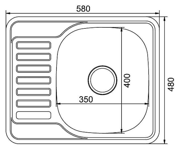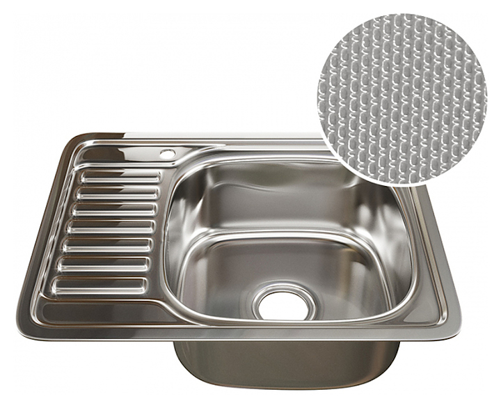 Мойка кухонная Mixline ML 48х58 см слив 90 мм, толщина стали 8 мм, с сифоном, с декором, правая