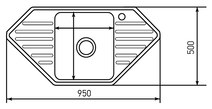 Мойка кухонная угловая Mixline ML 50х95 см слив 90 мм, толщина стали 8 мм, с сифоном