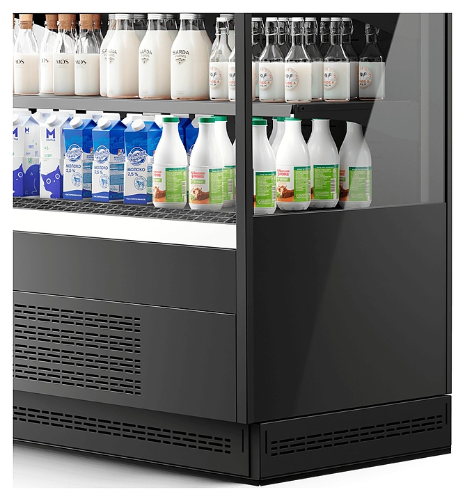 Холодильная горка Dazzl Vega 070 H195 M 250 Plug-in предназначена для эффектной демонстрации и кратковременного предпродажного хранения предварительно охлажденной мясной продукции на предприятиях общественного питания и торговли. Модель оснащена подставкой с встроенным холодильным агрегатом, воздухопроводящими решетками и 4 навесными экспозиционными полками с наклонными профилями ценникодержателей. Модель доступна в 10 стандартных цветовых исполнениях фронтальной панели по таблице RAL: 9003, 9006, 9005, 3004, 7024, 1016, 6018, 3020, 5017 и 1015. В комплект поставки входят обзорные боковины. Особенности: