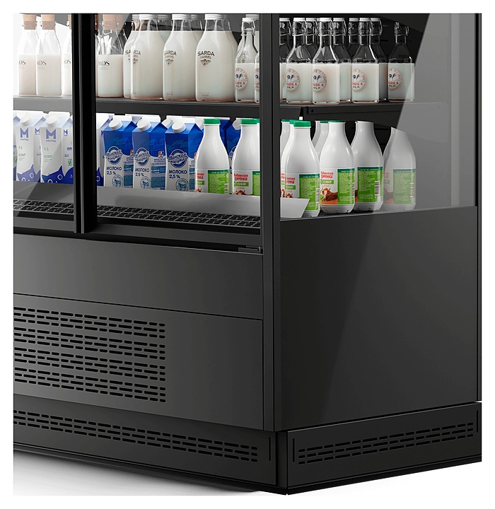 Холодильная горка Dazzl Vega DG 070 H195 250 Plug-in предназначена для эффектной демонстрации и кратковременного предпродажного хранения предварительно охлажденных гастрономических изделий на предприятиях общественного питания и торговли. Модель оснащена подставкой с встроенным холодильным агрегатом, воздухопроводящими решетками, распашными дверьми и 4 навесными экспозиционными полками с наклонными профилями ценникодержателей. Двери с прозрачными стеклопакетами с низкоэмиссионным твердым покрытием. Модель доступна в 10 стандартных цветовых исполнениях фронтальной панели по таблице RAL: 9003, 9006, 9005, 3004, 7024, 1016, 6018, 3020, 5017 и 1015. В комплект поставки входят обзорные боковины. Особенности: