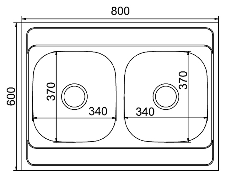 Мойка кухонная Mixline ML 60х80 см с 2 чашами, слив 90 мм, толщина стали 6 мм, с сифоном