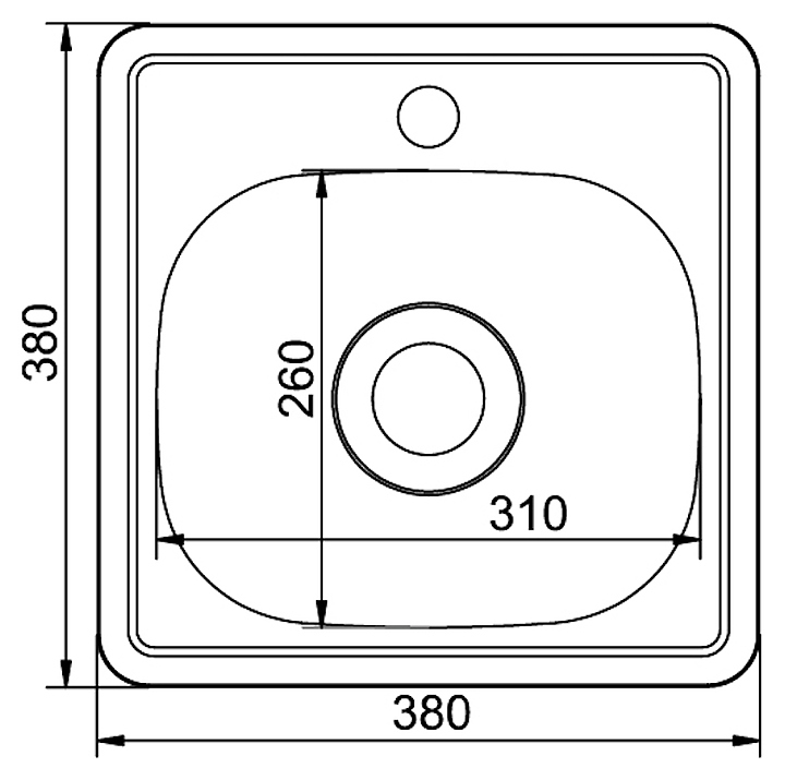 Мойка кухонная Mixline ML 38х38 см слив 40 мм, толщина стали 6 мм, с гофросифоном