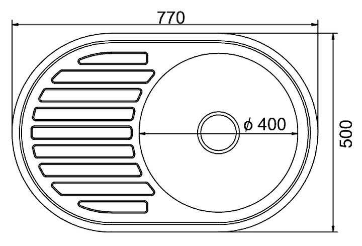 Мойка кухонная Mixline ML 50х77 см слив 90 мм, толщина стали 6 мм, с сифоном, правая